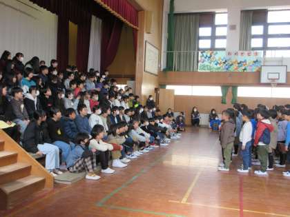 6年生をおくる会では、みんなで集まっての集会で行いました。コロナ以来の集会の形式で、初めて経験する子どもたちも多かったのではないかと思います。