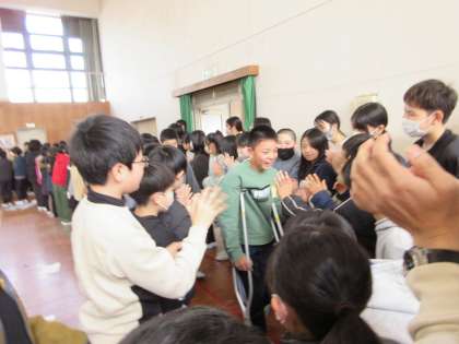 全校みんなが笑顔いっぱいの6年生をおくる会でした。教室に帰ってから、感動して大泣きする下級生もいました。あらためて6年生とお別れするさみしさも感じるひとときでした。全校みんなで、6年生への感謝の気持ち、6年生から下級生への熱いメッセージを伝えることができた会でした。とても素敵なすばらしい経験となったと思います。
