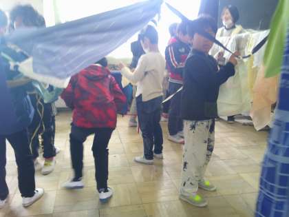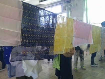 みんながおってきた色鮮やかなぬのがカーテンみたいにゆれてとてもきれいでした。