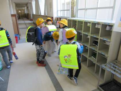 学習で登校するようになって2日目です。昨日教えてもらったくつのはき替え方、靴の直し方、上靴のはき方・・・今日は自分でばっちりできました!