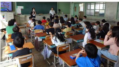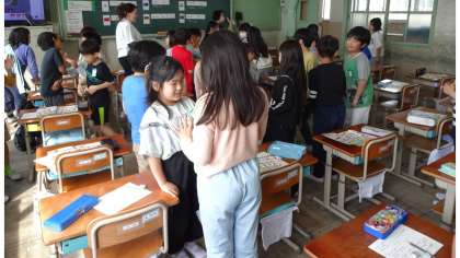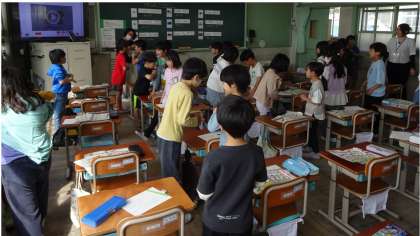 3年生になり、外国語活動が始まりました。友だちと楽しそうに交流する姿が見られました。