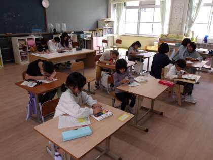 6くみは今日の学活の時間に「よろしくねカード」と「おたんじょうびカード」を書きました。