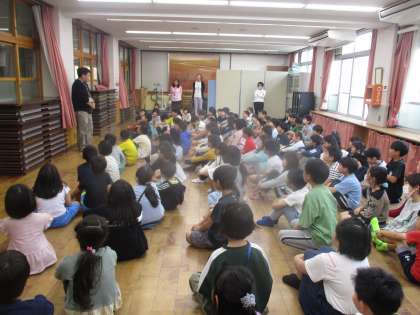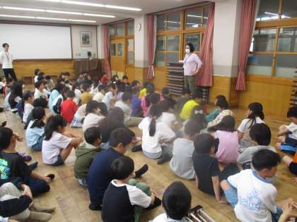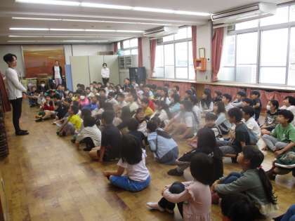 今日は学年集会がありました。先生たちの自己紹介や学年目標の発表、年間の行事の説明などをしました。