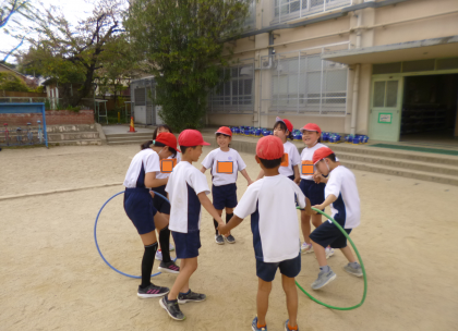 ストレッチをしたり、道具を使ったりして体を動かしました。