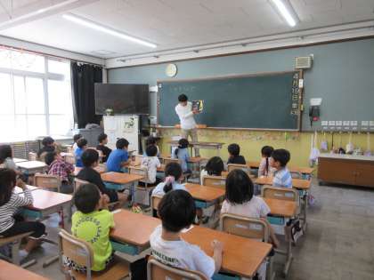 ちょっとした時間に、絵本の読み聞かせを聞くのが楽しみになっている1年生。「絵本読んで」と言いに来てくれます。先生が読むのをじっと聞く子どもたちでした。また、楽しい絵本を用意しておきます!