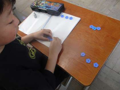 わり算の学習がスタートしました。はじめはブロックやおはじきを使いながら、同じ数ずつ分けることを学習しました。