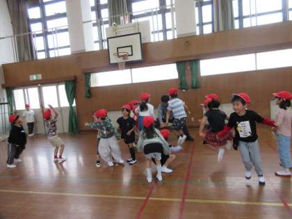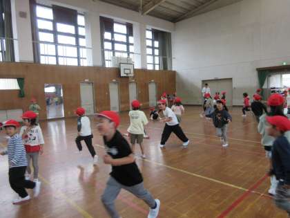 休み時間に、1年生みんなで体育館で遊びました。元気いっぱい走る子どもたちでしたが、次第に担任の先生のところに集まっていく様子が見られました。先生と遊びたいのですね。