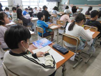 子どもたちは、一生懸命考えて、頑張って書いていました。