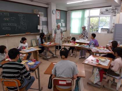 「なんの給食が好きかな?」「先生、バター渦巻きパンが好きやけど、今度いつ出るの?」