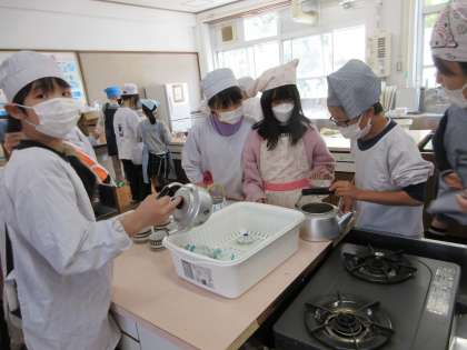 コンロの火をつけるのも、注意深く頑張りました。みんなで話し合いながら、協力して活動しました。