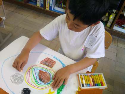 色んな色のクレパスを使って、色鮮やかなたまごを描くことができました。