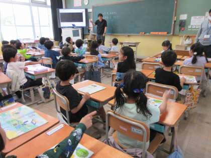「さんぽ」の歌を動作をつけて歌いました。元気のよい歌声でした。さらによい歌声になるように、「口をはっきり開けて」「笑顔で」歌うようにしました。