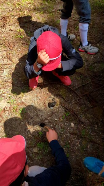 何かを見つけたよ。タヌキの糞かな?