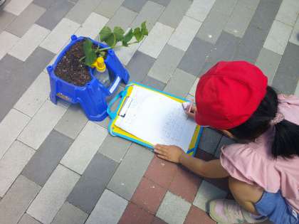 葉っぱの形や茎の色、触ったり匂ったりして、細かいところまで観察しました。