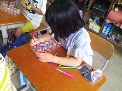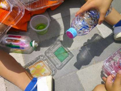 色を塗った後は、なわとび広場に行き、光を当てました。