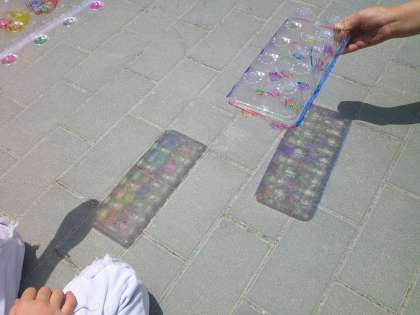 影に色がついたのをみて「きれい!」「見てみて!」と興奮した様子の子どもたちでした。