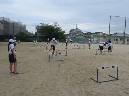 ハードル走では、自分に合ったインターバルを決め、タイムを縮めることが出来るように取り組みました。友だちと競うことも楽しみながら、一生懸命に走りました。