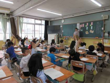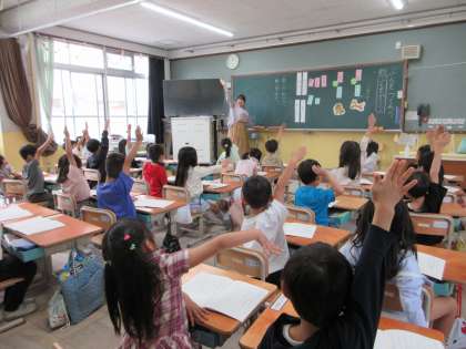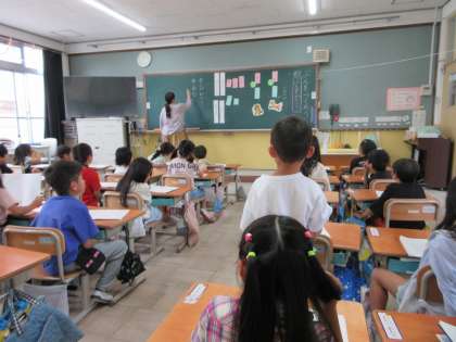 挿絵を基に、何が、どうしたのかみんなで発表し合って文をつくりました。