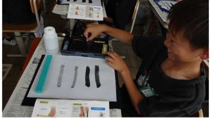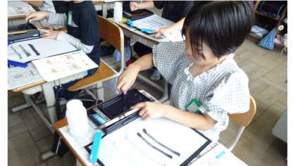 初めての毛筆の学習を行いました。ワクワクしながら取り組んでいる様子が見られました。