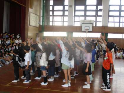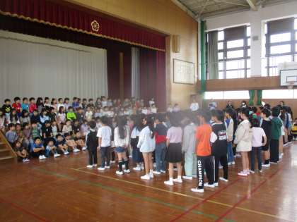 今日は1年生を迎える会がありました。3年生は言葉と歌を1年生にプレゼントしました。音楽の時間に学習した「ハッピーソング」を元気よく歌っていました。