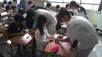 朝学習「おりづるにねがいをこめて」4年生と