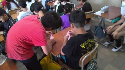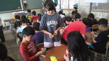 朝学習「おりづるにねがいをこめて」4年生と