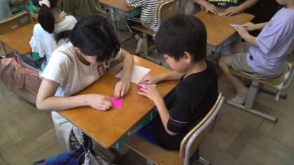 朝学習「おりづるにねがいをこめて」2年生と
