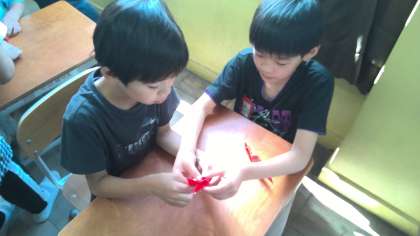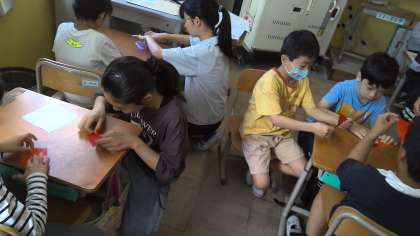朝学習「おりづるにねがいをこめて」2年生と