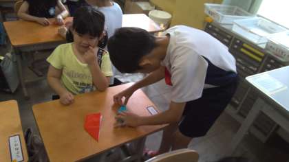 朝学習「おりづるにねがいをこめて」1年生と