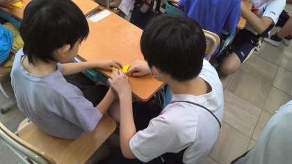 朝学習「おりづるにねがいをこめて」1年生と