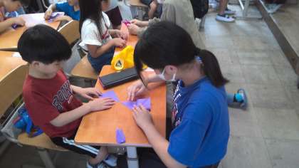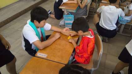朝学習「おりづるにねがいをこめて」1年生と