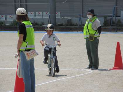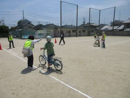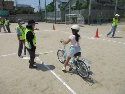 地域の方々、PTA、西京警察の方々のご協力をいただき、自転車安全教室を行いました。自転車の点検のポイントや道路を走るときの注意など、たくさん教えていただきました。