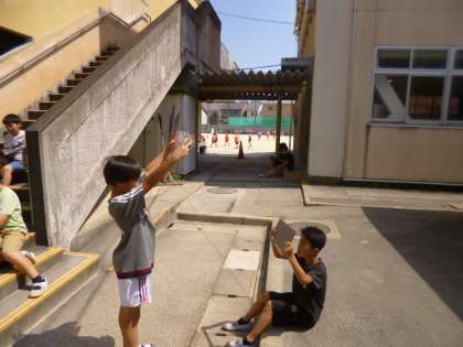 光にかざした作品をタブレットで撮り、鑑賞しました。