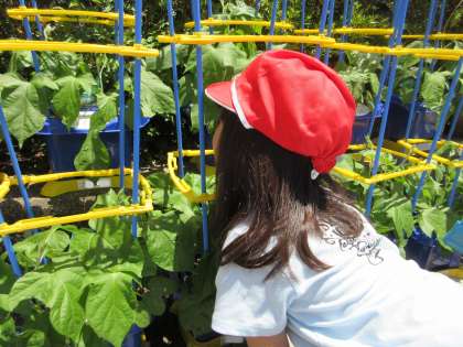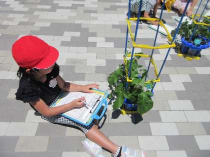 葉は、手のひらくらいです。大きさを何かにたとえて分かるようにしたり、絵に描いてしっかり観察したり、じっくり自分のアサガオを見つめていました。