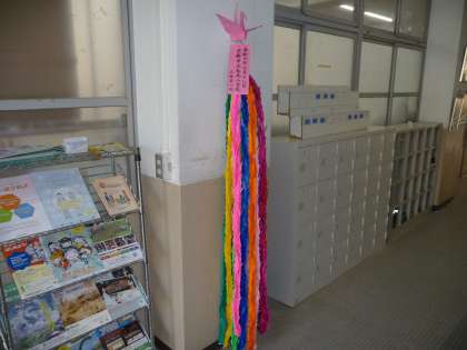 松尾小学校のみんなの協力で,千羽鶴が完成しました。