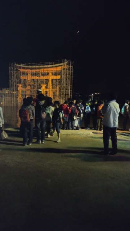 買い物タイムも終わり 鳥居のライトアップを観に来てます!