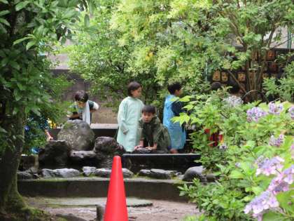 雨樋から流れる水の音を、みんなで聞き耳を立ててじっと聞きました。