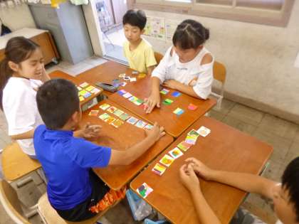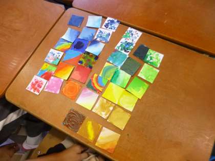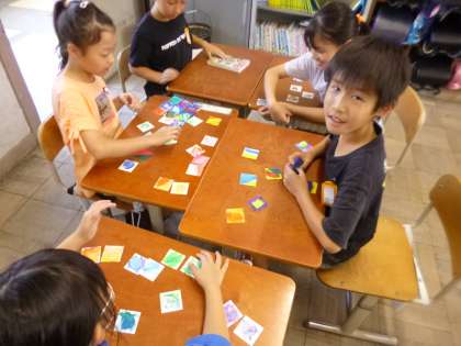 完成した作品を並べ合って仲間分けをしたり、お気に入りの作品を伝えあったりしました。
