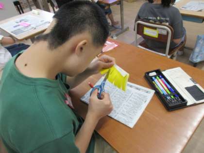 色紙をまっすぐに均等に切るのはなかなか難しいです。