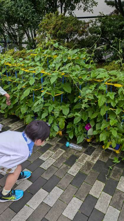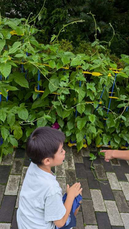 自分のお兄ちゃんに、花を咲かせた自分のアサガオを見てもらいました!