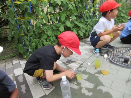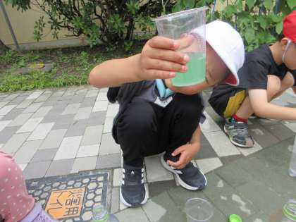 混ぜることで、色が変化することを楽しんだり不思議に思ったりする姿が見られました。