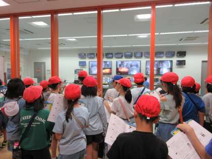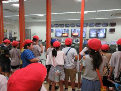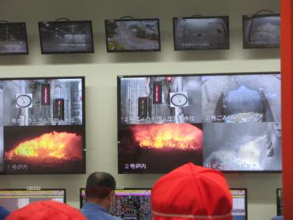 中央制御室へ。さすてなでは、1日500tのごみを焼却しているそうです。900度の炎がごみを燃やしています。