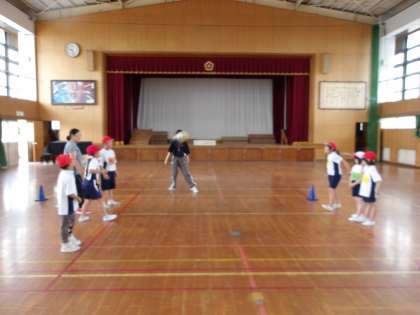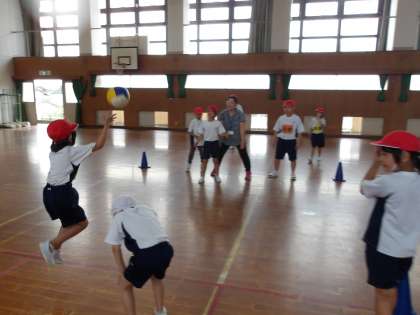 6くみは体育科の学習で、みんなでドッジボール(中当て)に挑戦しました。これまで転がしドッジボールに取り組んできたみんなにとっては久しぶりのドッジボールです。