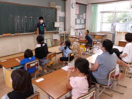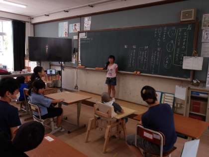 お話を聞いた後は、しっかり感想や質問を伝える姿が見られました。また、6くみ全員が話し終わった後は、担任の先生も夏休みの思い出を話しました。