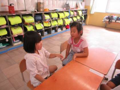 夏休みの楽しかったことを、ペアで交流しました。どこかへ行ったことや、家でお友だちと遊んだことなど、楽しいことを思い出してお話することができました。