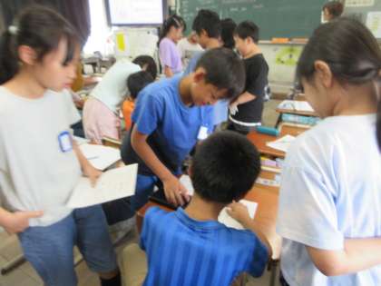 生まれる前の赤ちゃんが、どのような状態でおなかの中にいるのか、グループで話し合い、図に描きました。活発に話し合う様子が見られました。