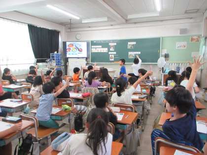人権参観で「韓国・朝鮮の文化を知ろう」という学習をしました。韓国のあいさつや服、給食を見たり、韓国の「ユンノリ」という遊びで遊んだりしました。日本と似ているところもたくさんあるんだということに気付いていました。