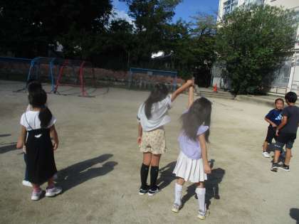 国語では、ちいちゃんのかげおくりの学習が始まりました。今日はいい天気だったので、実際に運動場でかげおくりをしてみました。教科書のようなかげおくりができて、とても楽しそうな様子でした。