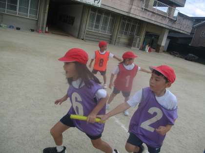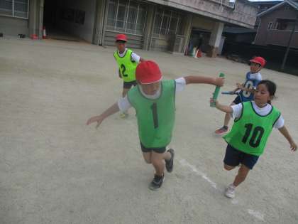 体育ではリレーの学習がスタートしました。チームで作戦会議をしたり、バトンパスの練習をしたりと頑張っています。