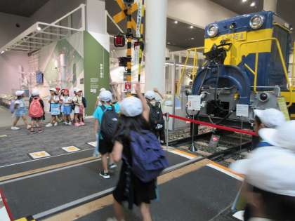 踏切を安全に左右をみてさっとわたる練習をしました。